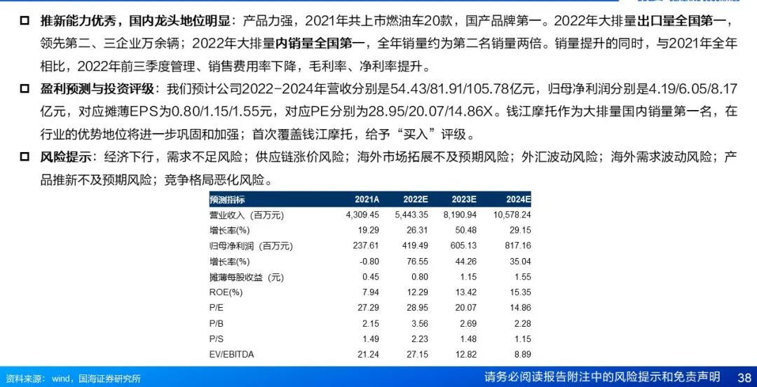 4.2重点关注公司及盈利预测:钱江摩托(首次覆盖)