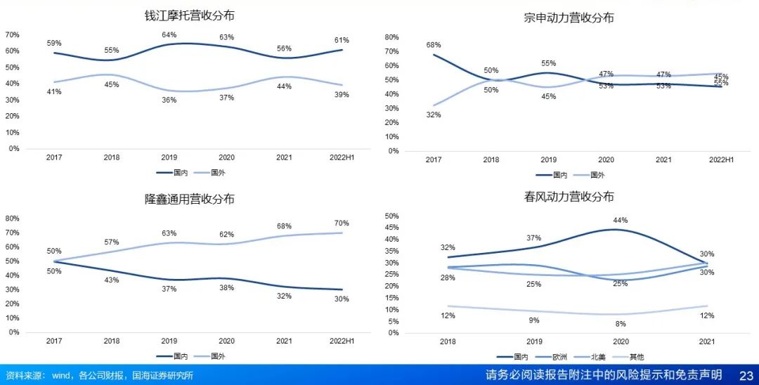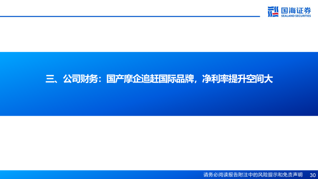 风险提示:禁摩限摩政策加码风险;经济下行,需求不足风险;行业竞争格局恶化风险;供应链涨价风险;外汇波动风险;海外需求波动风险;产品推新不及预期风险;海外市场拓展不及预期风险;市场波动,估值中枢下降风险;国内外公司并不具备完全可比性,对标的相关资料和数据仅供参考。