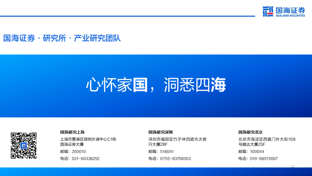 在任何情况下,本公众号所载信息、意见不构成对任何人的投资建议,所述证券或金融工具买卖的出价或征价,评级、目标价、估值、盈利预测等分析判断亦不构成对具体证券或金融工具在具体价位、具体时点、具体市场表现的投资建议。对任何直接或间接使用本公众号所载信息和内容或者据此进行投资所造成的任何一切后果或损失,国海证券及/或其关联人员均不承担任何形式的法律责任。