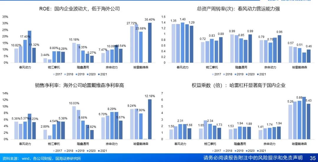 3.5.2杜邦拆解:哈雷戴维森杠杆、净利水平高,推高ROE