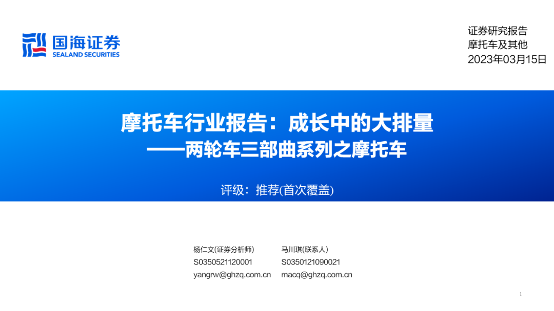 完整版63页摩托车行业深度报告联系国海证券研究所全球产业研究团队