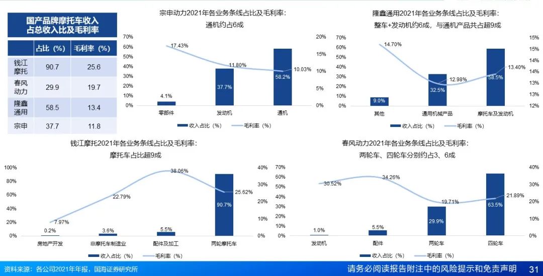 3.2业务条线:钱江摩托车业务占比、毛利率较高