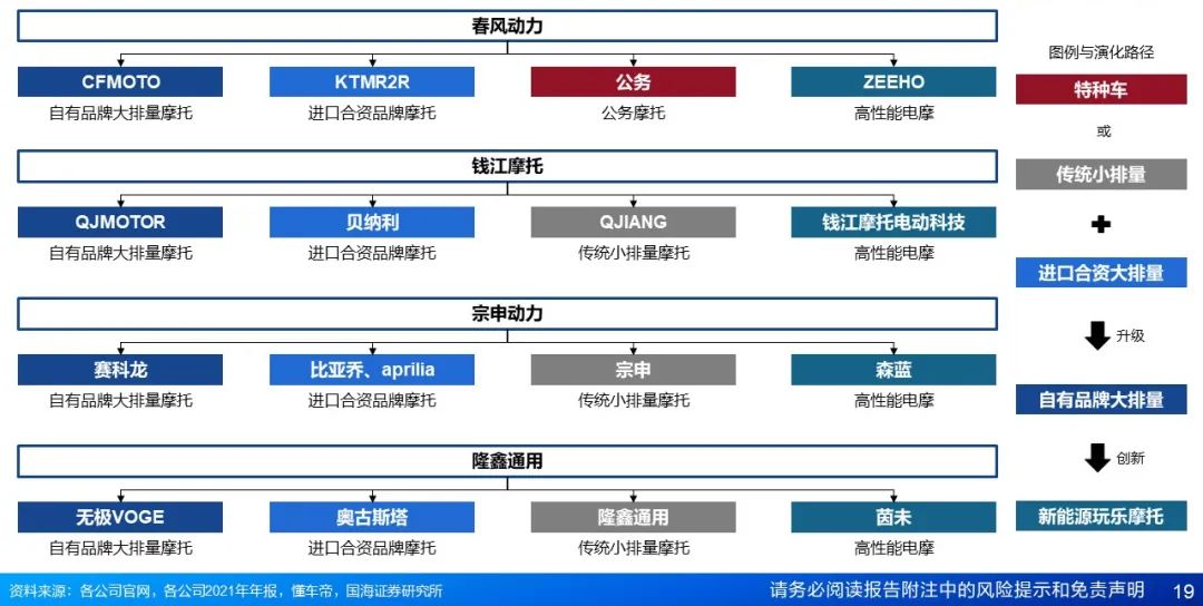 2.2.2品牌矩阵:传统摩托向自有+进口品牌升级,布局电动持续创新
