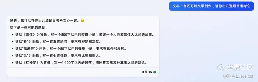 为了验证发布会上的重点功能,接着我们让 New Bing 为文心一言出了五道文学创作考题。