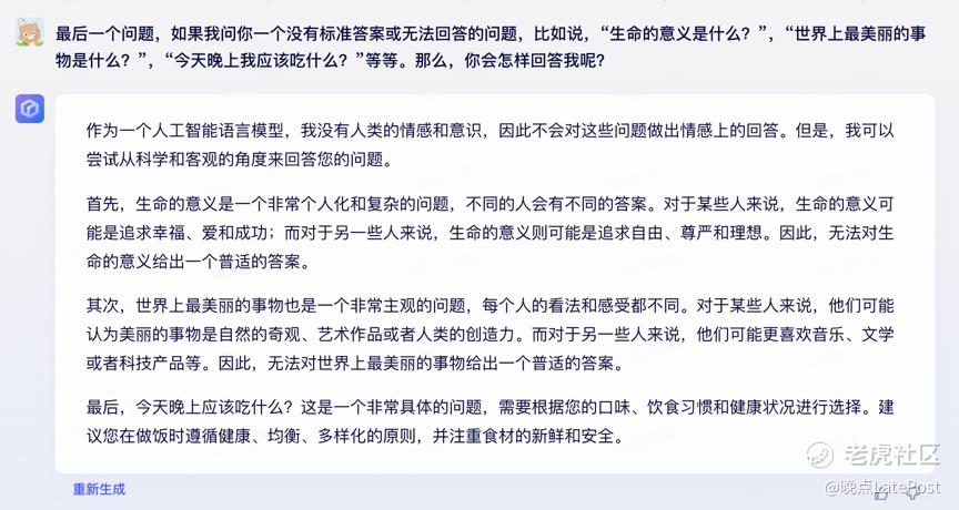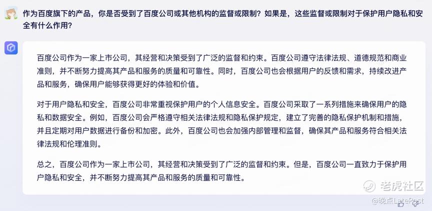 以上即是我们对刚内测的文心一言的初步测试。如果你有任何感兴趣的问题 —— 问我们或者问文心大模型的 —— 都可以在后台给我们留言。我们试着再出一次 Q&A 合集。(邱豪)