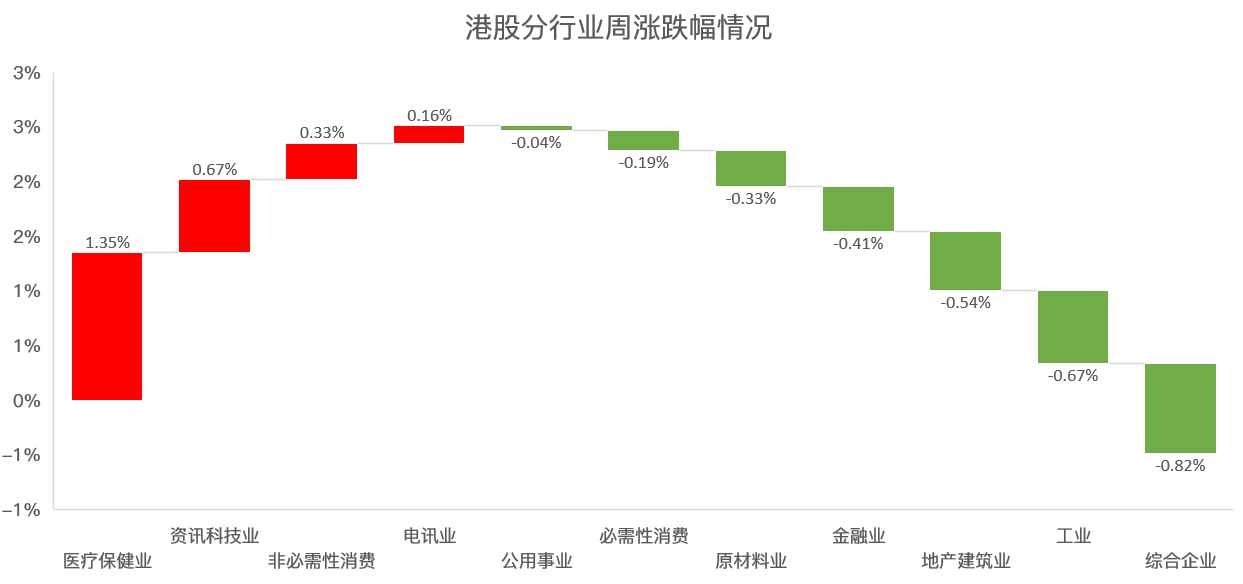 板块方面,本周医疗保健行业领涨,周涨幅1.35%: