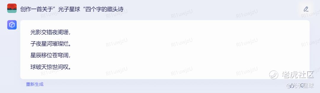 这首诗虽谈不上有多少文学、审美价值,但至少兢兢业业地按照要求完成了创作。相比之下,ChatGPT似乎并没有很好地理解“藏头诗”的含义。