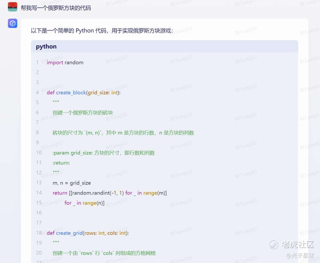 而在发布会并未透露的编程领域,面对编写“俄罗斯方块”代码的要求,文心一言在Python里洋洋洒洒地写下了88行代码。在交由一位程序员朋友检查后,其称文心一言所写的代码整体并没有太大的毛病。