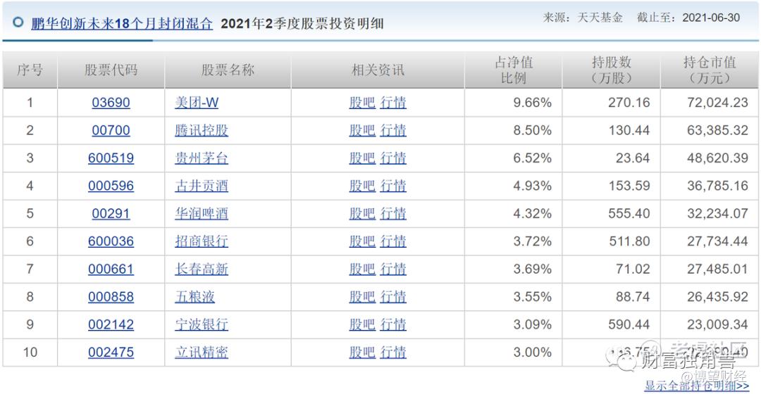 除了持股同质化的问题外,有业内人士表示,鹏华创新未来基金近年来持仓似乎与创新类股票无关。从2021年一季度和二季度的持仓可以看出,鹏华创新未来的前三大持仓股,是此前深受反垄断政策影响较大的美团-W和腾讯控股。而且王宗合还特别喜欢持有白酒和银行股。