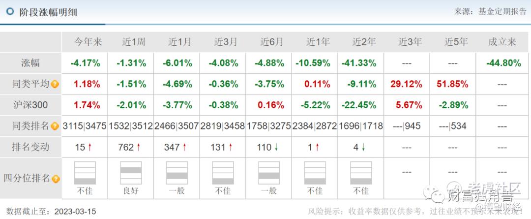 我们也可以以鹏华创新未来为例,截至3月15日,鹏华创新未来混合基金最新净值为0.5520,该基金成立以来收益-44.80%,今年以来收益-4.17%,近1月收益-6.01%,近3月收益-4.08%,近6月收益-4.88%,近1年收益-10.59%,近两年来收益率为-41.33%,近2年来该基金排名同类1696/1718。