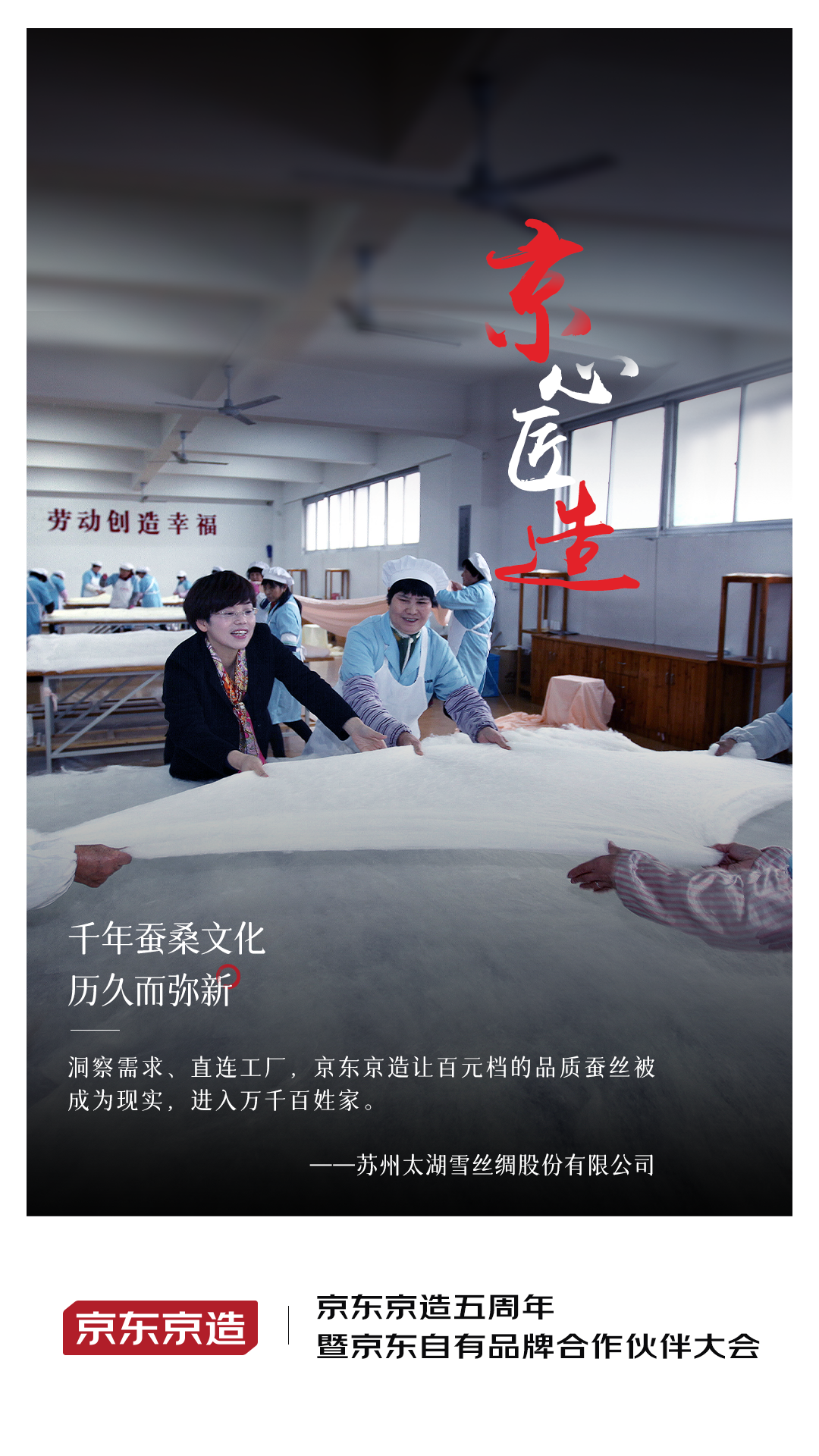 再看家纺。近年来,苏州太湖雪丝绸股份有限公司(以下简称“太湖雪”)牵手京东京造,加速开拓内销市场。京东京造洞察到国内消费者对于蚕丝被的价格痛点,与太湖雪共创100%柞蚕丝子母被,很好地解决了价格和应季反差问题:柞蚕丝比桑蚕丝韧性好、成本低;子被薄、夏天适用,母被略厚、春秋适用,子母被四角用扣子组合起来、冬季适用。并且,产品从源头工厂直达消费者,没有中间商赚差价,让蚕丝被过去动辄千元的价位直接下探至百元档。“花一份钱,买两条被,满足四季变换”,消费者一致好评子母被的极致性价比,销量常年位居京东同类商品第一。