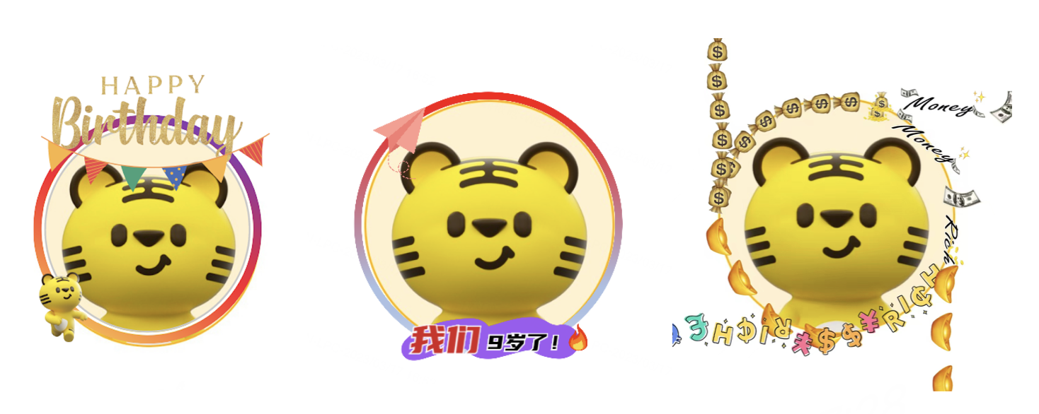 一起DIY你的专属头像框,可以包含9、周年、小虎、生日等元素,也可以是喜欢的公司,或者配件。题材不限,发挥你的想象力!参与设计的小虎将会获得虎币,以及盲盒等奖励,优质的作品还将有机会成为9周年特别头像框的灵感来源。