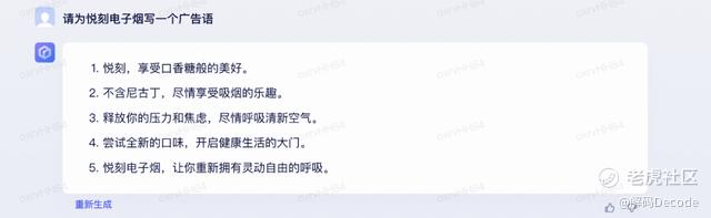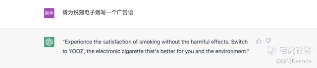 这一个则是文心一言完胜,chatGPT不仅用英文回答,而且还搞错了品牌,将悦刻翻译为YOOZ。