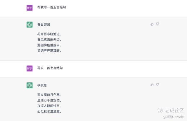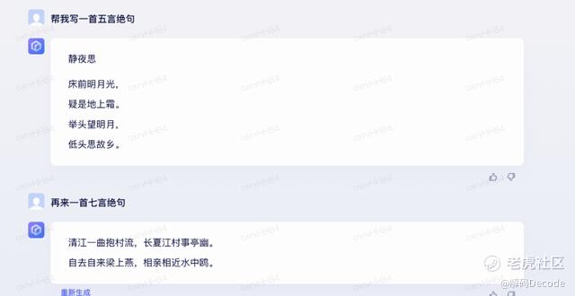 古诗创作文心一言上来就copy了一首家喻户晓的诗词。chatGPT的回答更标准,也作了诗名。