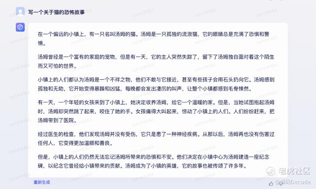 在故事创作上,文心一言似乎有些不合逻辑,人被猫咬了却把猫抱到了医院,直接忽略了人。且结尾也有些胡言乱语,一边不能忘记汤姆带来的恐惧和不安,又要给它建造纪念碑,视为英雄?