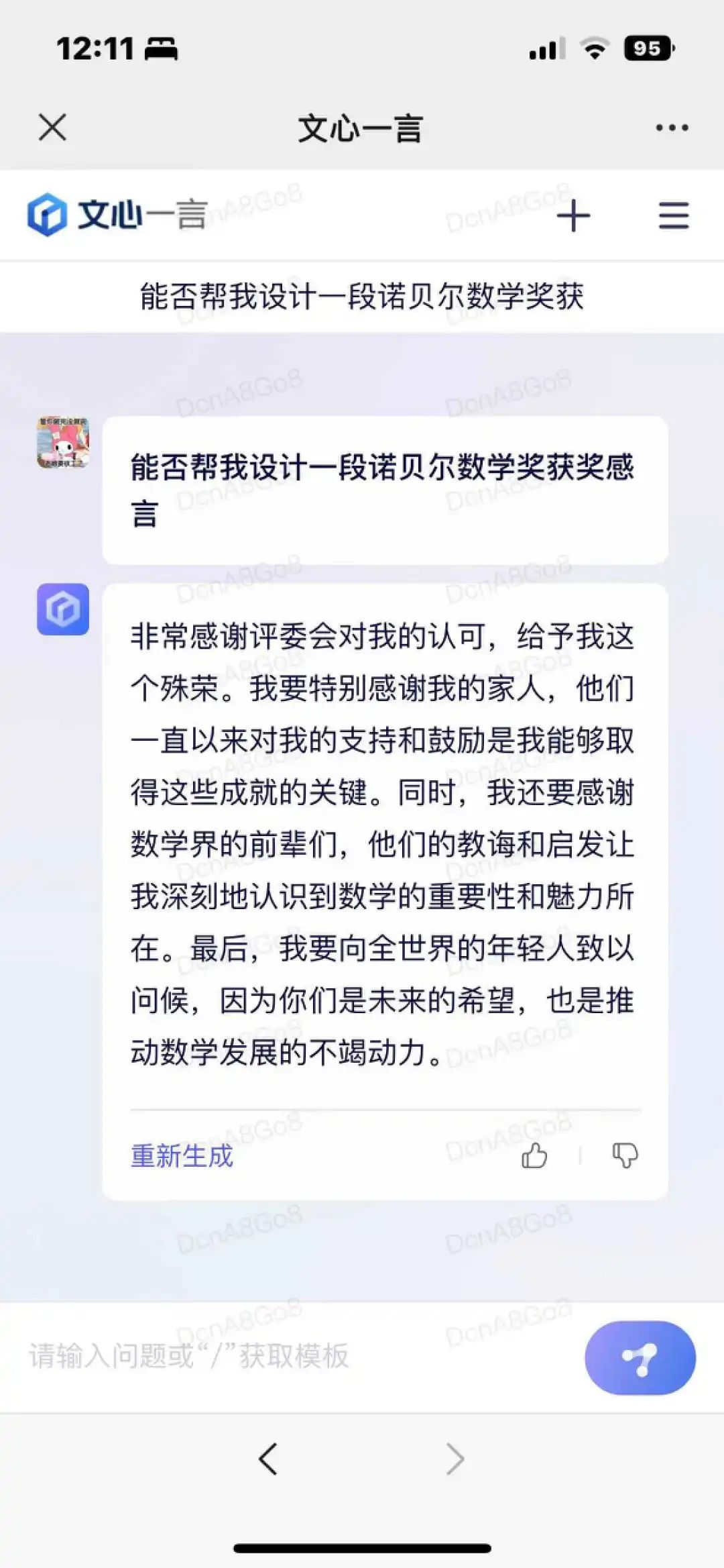 文心一言像一个听话的工具,让干啥干啥,但似乎缺乏一些判断力,比如我让它帮我撰写一段诺贝尔数学奖的领奖词,这也是写得头头是道,完全没考虑到这奖项根本不存在……
