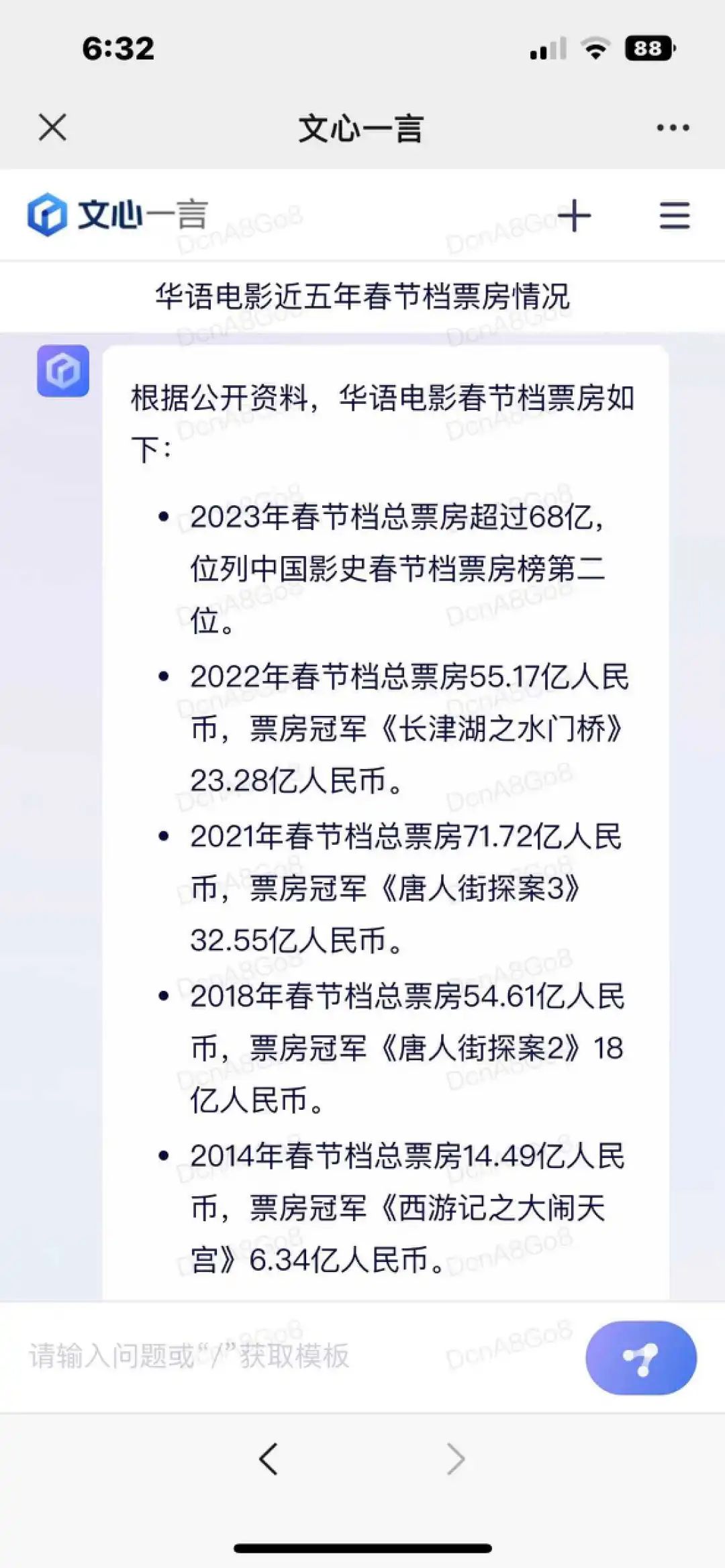 但仔细校对会发现根据国家电影局数据,2021年春节档电影票房达78.22亿元,这个数据并不准确,除此之外,“近五年”的指令似乎也没有很好的执行,中间有不少遗漏。看来如果把这类工作都交给文心一言,还是很有风险的。