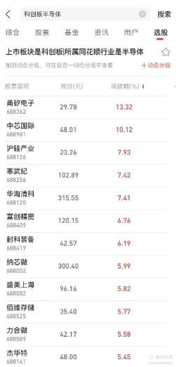 当日科创板半导体涨幅:
