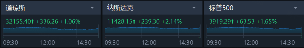 美东时间周二,投资者认为$硅谷银行(SIVB)$暴雷危机已经得到控制,加上2月通胀数据完全符合预期,三大指数集体收涨,截至收盘,道琼斯指数涨1.06%,报32155.40点;标普500指数涨1.65%,报3919.29点;纳斯达克指数涨2.14%,报11428.15点。