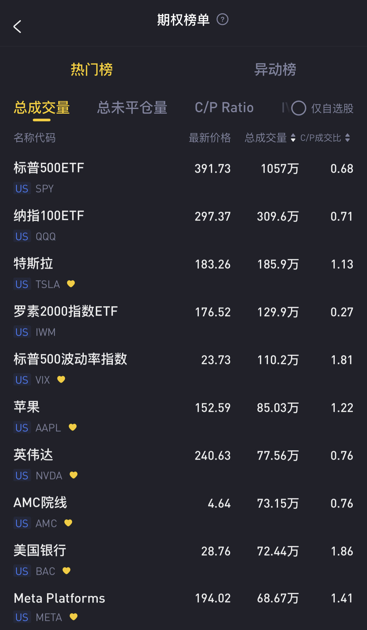 $标普指数ETF(SPY)$期权成交1057万张合约,其中看涨期权占比40.7%;$纳指100ETF(QQQ)$期权成交309.6万张合约,其中看涨期权占比41.9%;