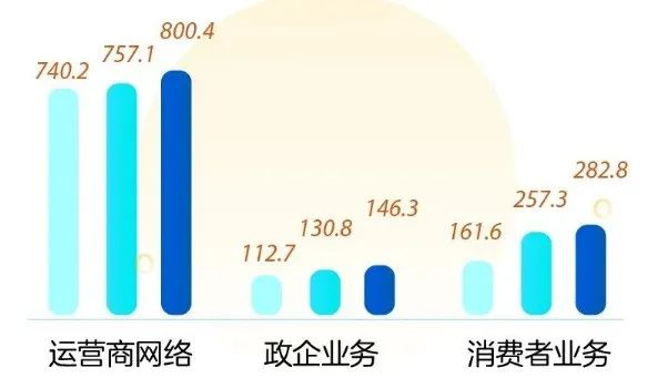 按照业务划分,中兴通讯目前主要由运营商网络、政企客户、消费者业务三部分组成。在过去三年国内外环境极其复杂的背景下,上述三大业务竟全部保持持续增长态势。