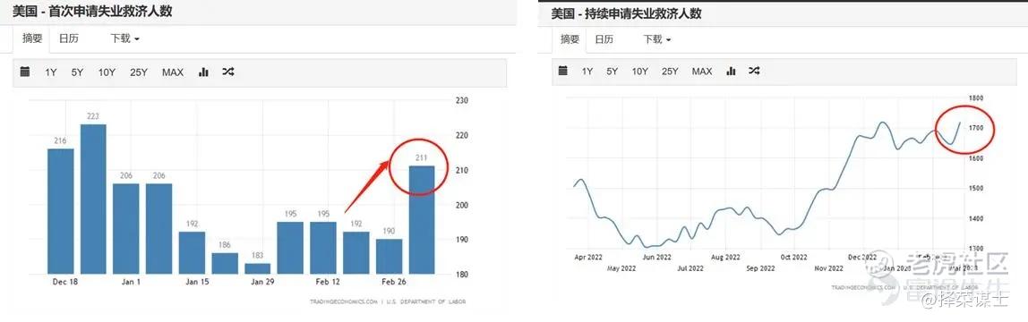 • 上周初请失业金人数录得21.1万,升至2022年12月24日当周以来新高。