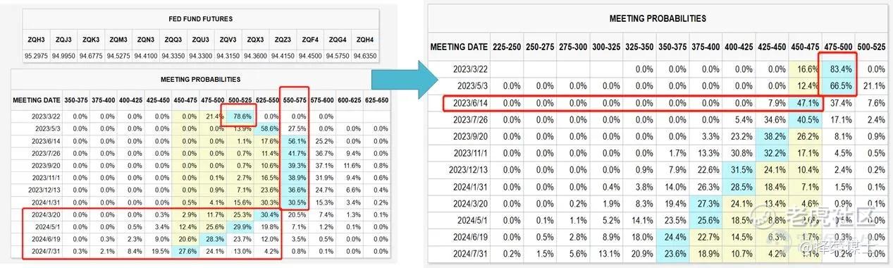 • 本周,因为硅谷银行事件的发酵,加息终点降至4.75-5%,下行了75个BP