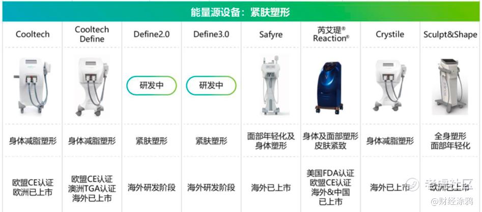 华东医药目前已经拥有覆盖面部及身体填充、面部清洁、埋线、皮肤管理、身体塑形、脱毛等非手术类医美领域在内超过30余款产品以及12款在研创新产品,前沿专利技术包括STATTM专利微球制备技术、OXIFREETM专利制造技术、Cryomodulation冰息科技、CORETM多频射频技术、RotateRF、Multi-CORETM、SVCTM、PCRTM等,其全球医美营销网络已经覆盖超过80个国家或者地区。
