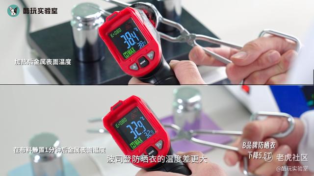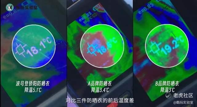得到的实验结果如下:其中,A品牌防晒衣下降了9.9摄氏度。