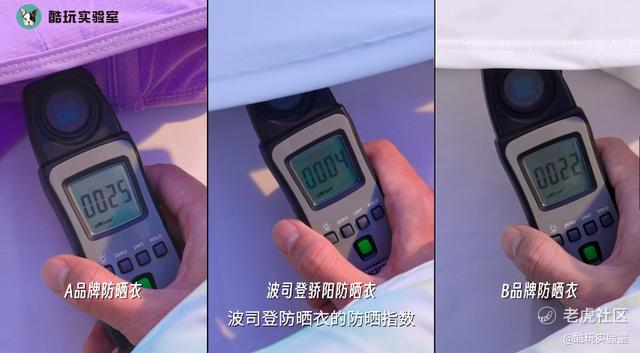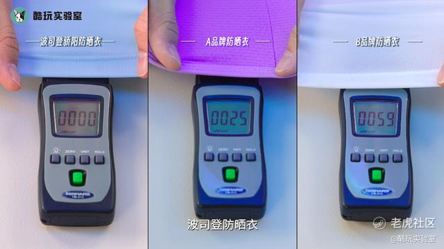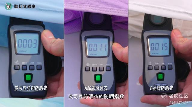 并且,对比三款防晒衣的数值变化,很明显只有经过波司登骄阳防晒衣后的紫外线强度变为了零,防晒效果明显要更好。