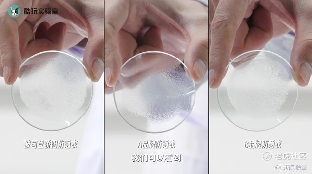 可以看到三个玻璃盖上有明显的水雾,三款防晒衣都有着良好的透气性,但波司登的玻璃盖上水雾明显要多于另外两款防晒衣,透气性更好。