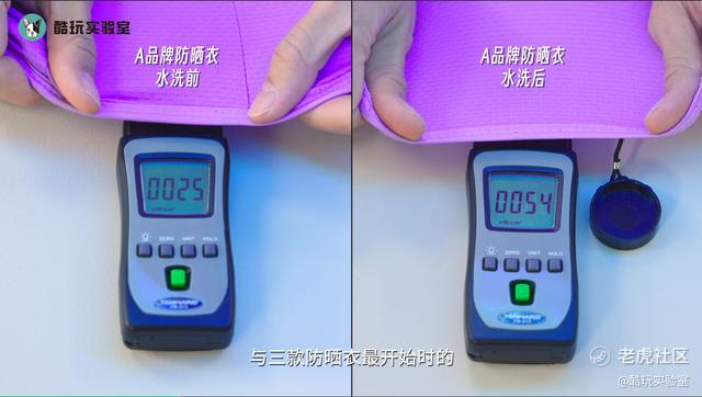 所以,要测试一款防晒衣防晒能力的强弱,核心也就是测验对上面这两种紫外线的防护能力。