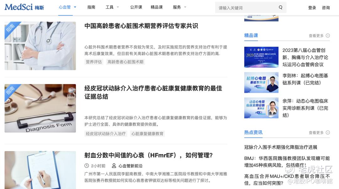 图1,梅斯医学网站提供的医学学术信息