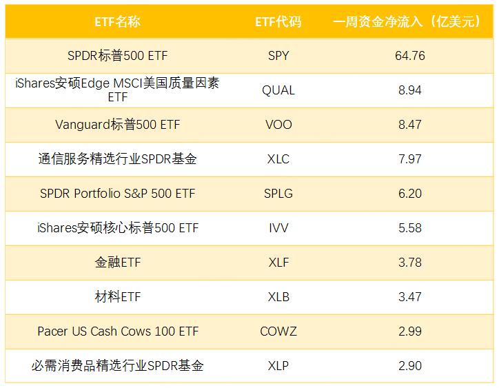 上周,标普500ETF(SPY)获得了最多的资金流入,此外,VOO、IVV这样的标普系ETF也获得青睐。