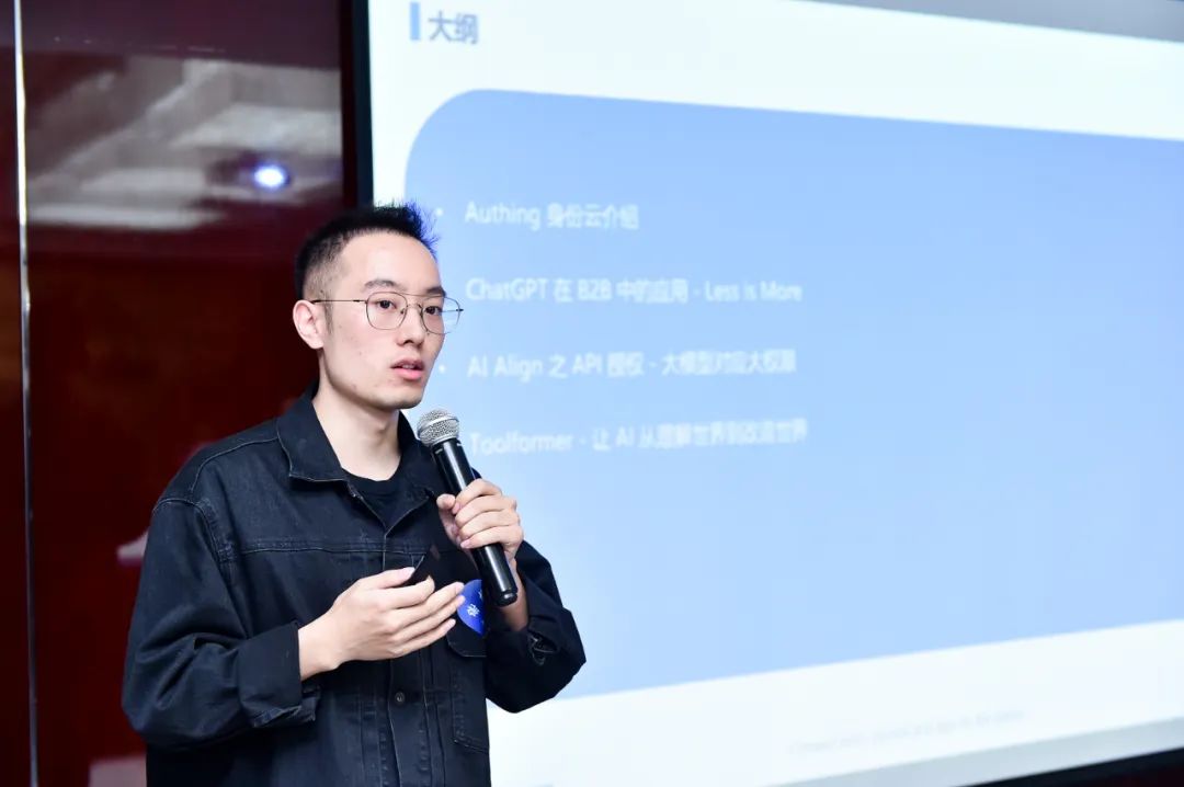 作为95后连续创业者,Authing创始人谢扬在云计算、低代码、Serverless、知识图谱等领域有丰富的研发和管理经验。此次他结合实战经验带来了《探讨 AI 落地的关键技术》分享。他认为,当下的Generative AI (生成式AI)已向 SynthAI (合成式AI)演进,而Synth AI 在 B2B 应用中又将逐步向“行动”演进。其中在生成式AI到合成式AI的演变的过程中,现阶段的生成式主要是通过Prompt提示词生成各种模态的信息和内容,未来的合成式AI会进一步将信息和内容提炼出观点和洞察,从而辅助人做决策。目前在SynthAI层面,Authing作为用户身份管理和员工身份管理解决方案的云服务厂商,做到了智能化交付,能通过自动读取客户需求,实现控制台智能配置和智能生成身份自动化工作流,同时可实现 AI 引擎及身份图谱实现自动化身份安全风险分析。