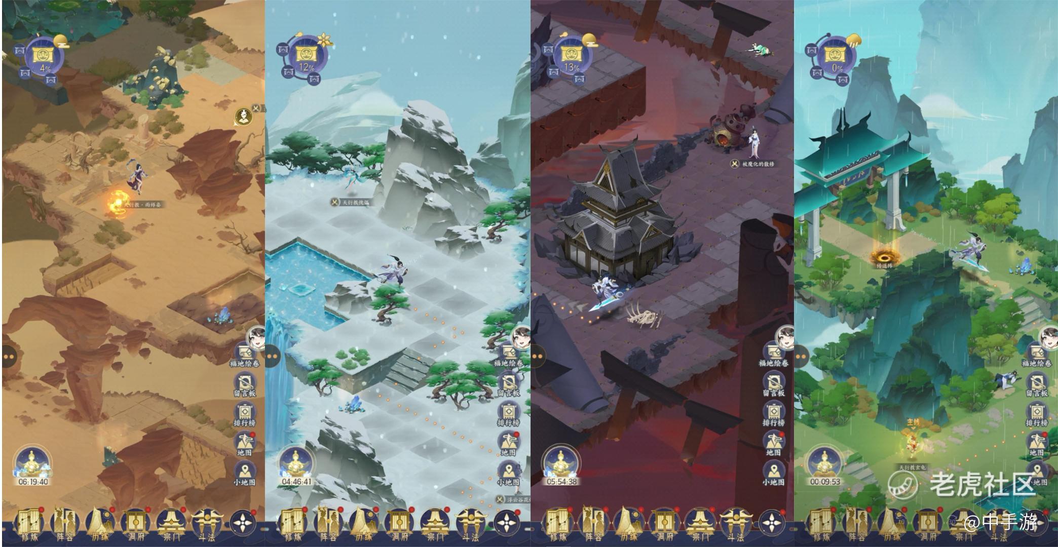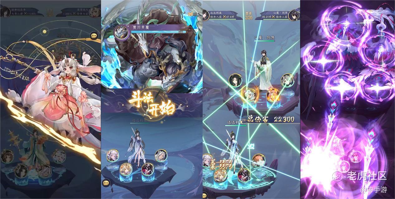 而战斗方面,则采取群体饱和式打击,玩家带着4个妖怪打群架。天地玄荒四族妖怪自由搭配,根据修行道法差异,可以搭配出群攻压制、单点爆破、毒火双攻等多种战斗流派。