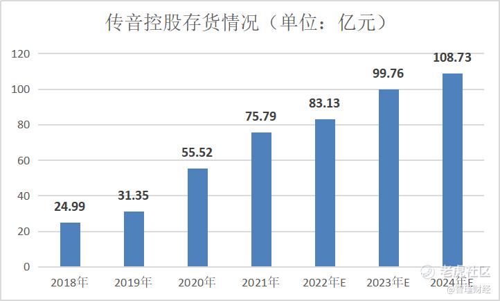 不过传音控股清存货的能力似乎较弱,过去数年库存压力一路飙升。截至2021年末,公司存货超过75.79亿,而东方财富预计传音控股的存货将在未来继续上涨,2022年-2024年相关数据分别为83.13亿、99.76亿和108.73亿元。