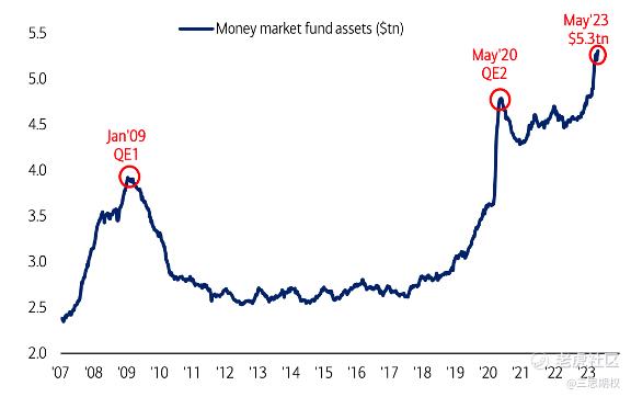 图:美国货币市场基金总量再创历史新高,银行存款大搬家
