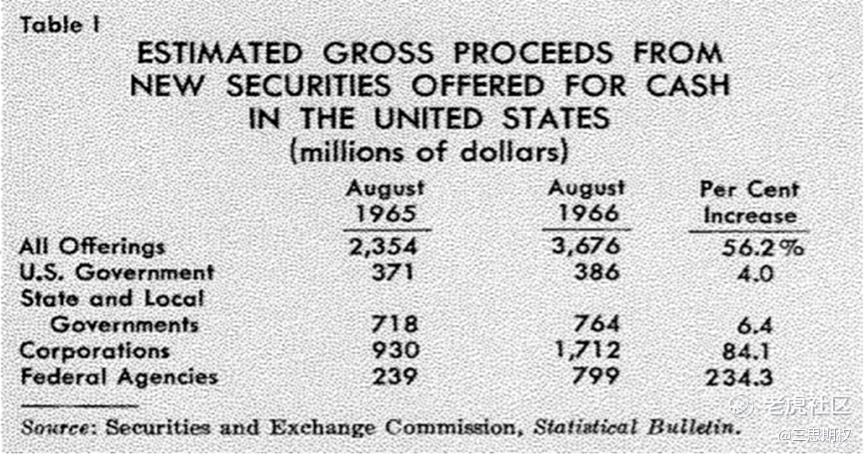 图:1965年和1966年美国证券融资组成,企业融资(+84.1%)和联邦政府融资(+234.3%)大幅上升