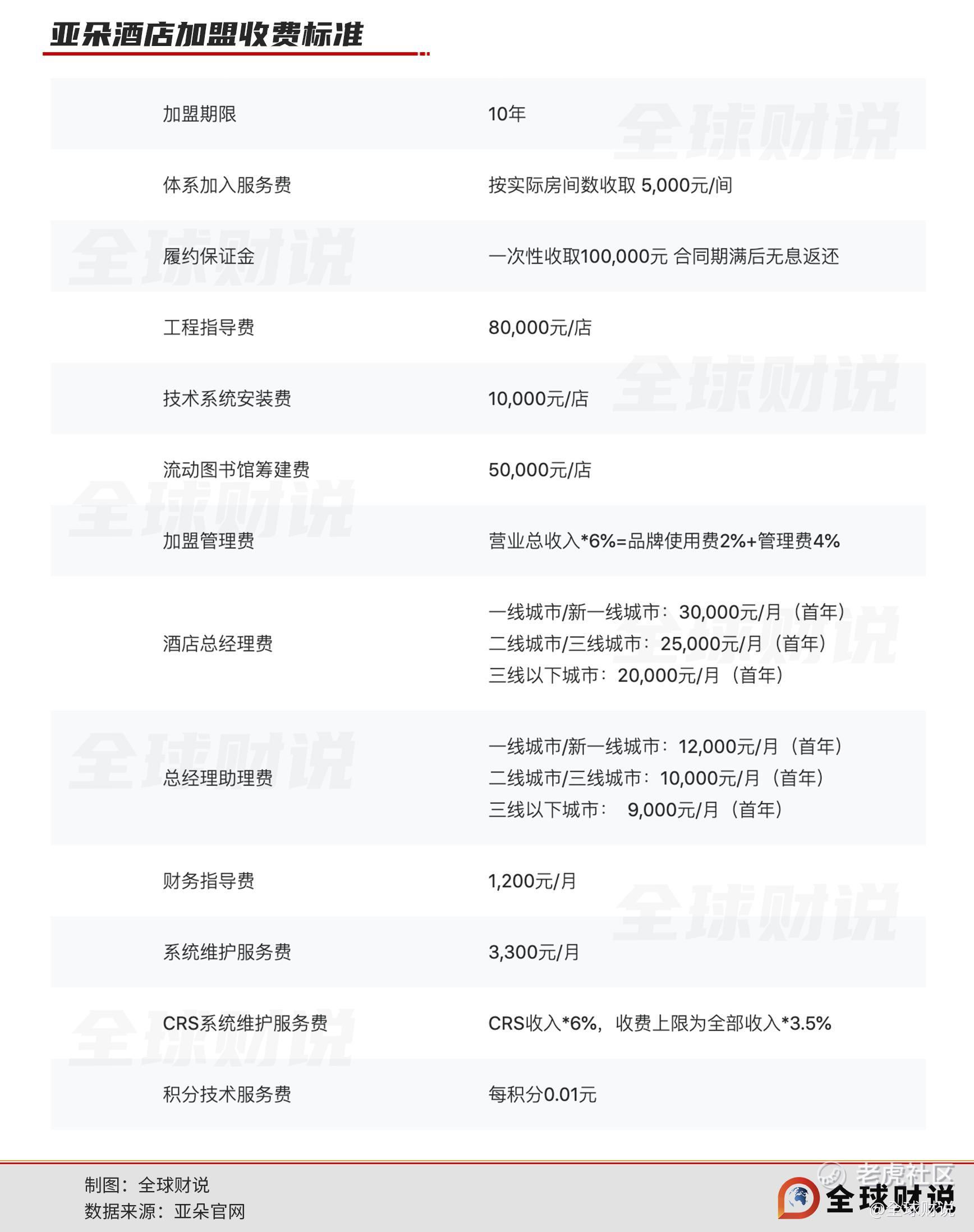 除上述提到的一次性支付性费用,加盟商在合约期还需向亚朵支付如加盟管理费、维护服务费等“持续性年费”。
