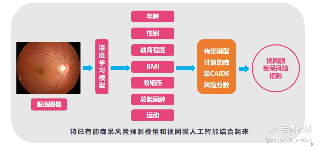 随着我国人工智能技术的高速发展,我们想是不是能够结合人工智能技术,构建快速、无创、准确得到CAIDE评分的工具,这时候我们就想到了视网膜。