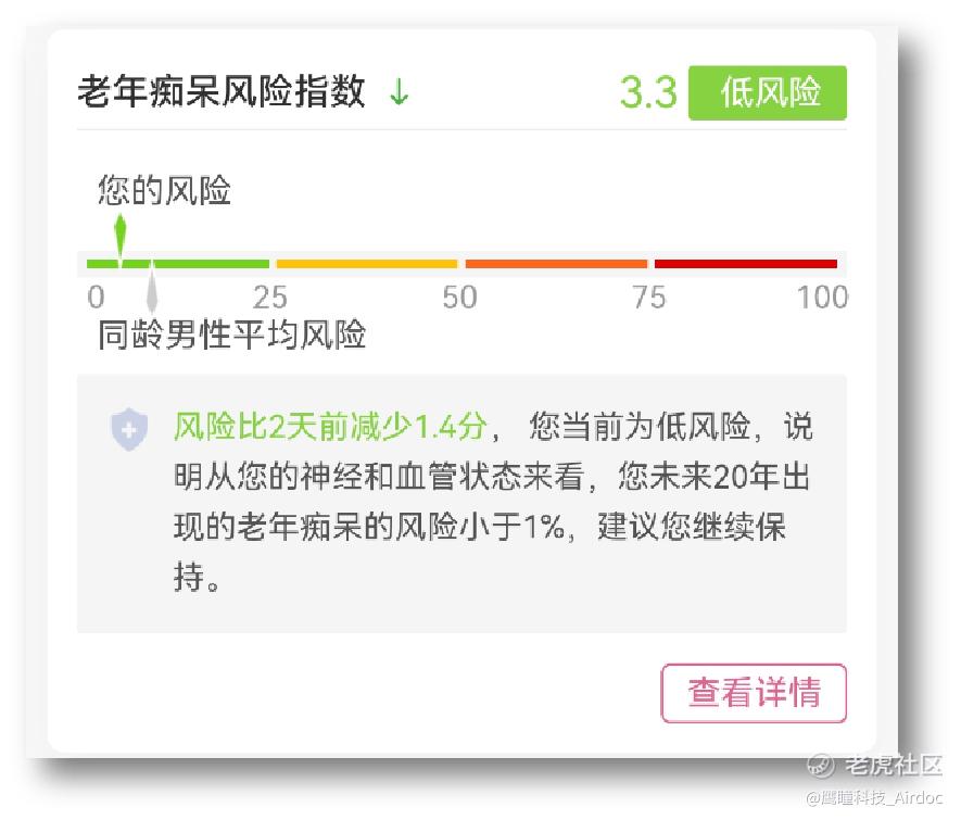 目前报告可以直接发送到手机上,受检者通过鹰瞳相关公众号就可以查看自己的老年痴呆风险指数。