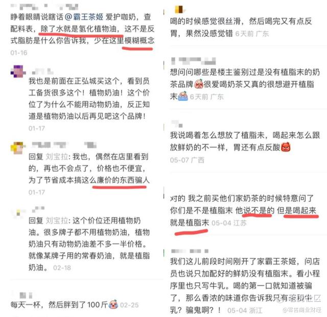 今年315,有消费者质疑霸王茶姬一直声称“鲜奶茶”“纯奶”背后的真实性。