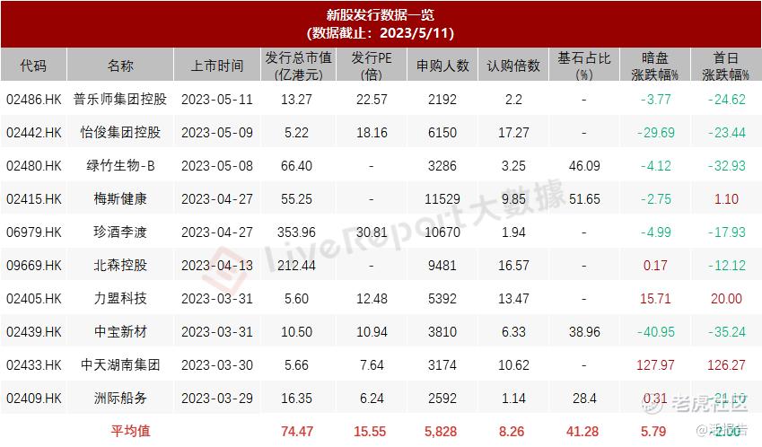 近期港股新股市场表现较差,近10只新股暗盘平均上涨5.79%,首日平均下跌2.00%。中天湖南集团暗盘及首日大涨超120%,淮北绿金股份、中宝新材及北森控股均大跌,港股第一白酒公司珍酒李渡首日滑铁卢,最近新上的三家首日表现亦令人失望。