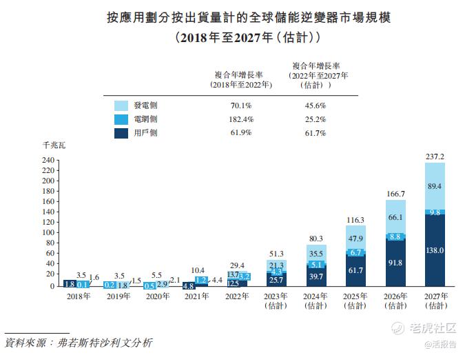 储能系统。公司基于深厚的逆变器技术和积累的研发能力,开发出可满足多应用场景的储能产品组合。根据弗若斯特沙利文的资料,以2022年出货量计,就用户侧应用而言,公司已取得15.1%的市场份额。