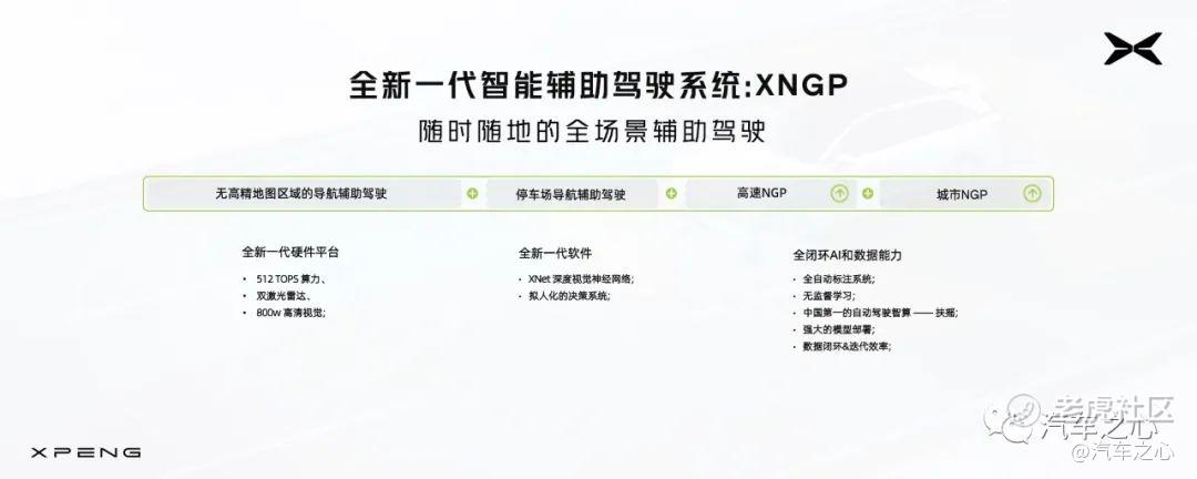 从功能定义来看,全场景的辅助驾驶能力是车企们竞争的重点,小鹏将其称之为 XNGP,即高速辅助驾驶+城市道路辅助驾驶+停车场导航辅助驾驶全场景点到点辅助驾驶功能。