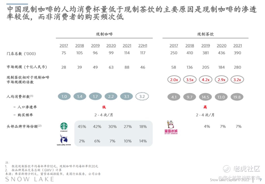 但我想说的是,以上这是企业角度的思路,为了避免竞争,就培养新的用户群体,毕竟中国的咖啡市场普及率并不高,消费者不经常购买咖啡最重要的原因并不是不喜欢味道,而是市场教育程度并不高,除了星巴克在全国除高线城市形成规模外,几乎没有精品咖啡品牌在全国形成规模,这也让低线城市的群体无法产生长期的购买,所以,从全国市场规模来看,中国消费者购买咖啡的频率低,最重要的原因并不是“不好喝”,而是市场渗透率的问题,雪湖资本在调研中也证实了这点。精品咖啡通常很小众,而据某头部咖啡连锁品牌用户占比来看,最多的也并不是深度咖啡爱好者。