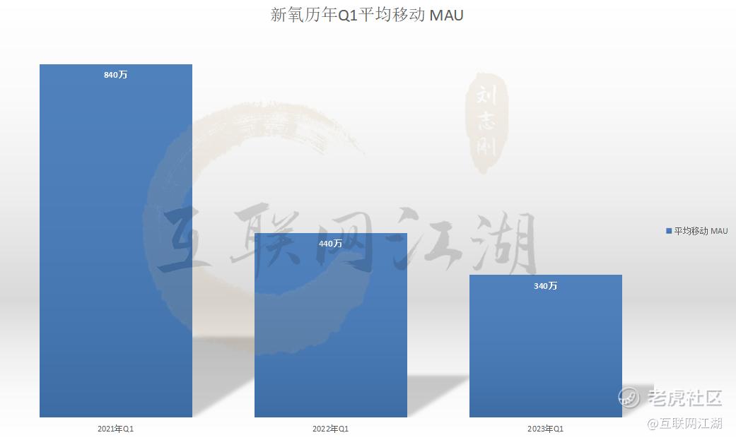 但是,从新氧的平均移动 MAU来看,在2023年一季度,新氧平均移动 MAU 为 340 万,而 2022 年第一季度为 440 万,2021年第一季度为840万,新氧这项数据最高时曾一度达到1000万。