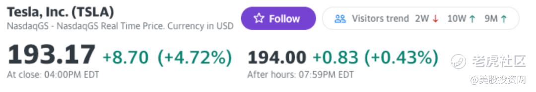 另外福特与特斯拉达成充电桩使用协议,今日TSLA股价涨超6%,收盘上涨4.72%。