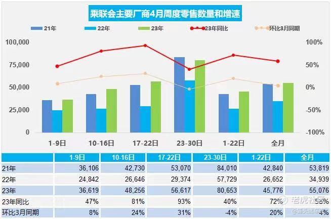 【乘联会:初步统计4月新能源车市场零售52.9万辆 同比增长87%】据乘联会初步统计,4月1-30日,乘用车市场零售165.2万辆,同比增长58%,环比增长4%;今年以来累计零售593.8万辆,同比增长持平;全国乘用车厂商批发178.3万辆,同比增长87%,环比下降10%;今年以来累计批发684.5万辆,同比增长7%。4月1-30日,新能源车市场零售52.9万辆,同比增长87%,环比下降3%;今年以来累计零售185.2万辆,同比增长37%;全国乘用车厂商新能源批发60万辆,同比增长105%,环比下降4%;今年以来累计批发209.7万辆,同比增长42%。(乘联会微信公众号)